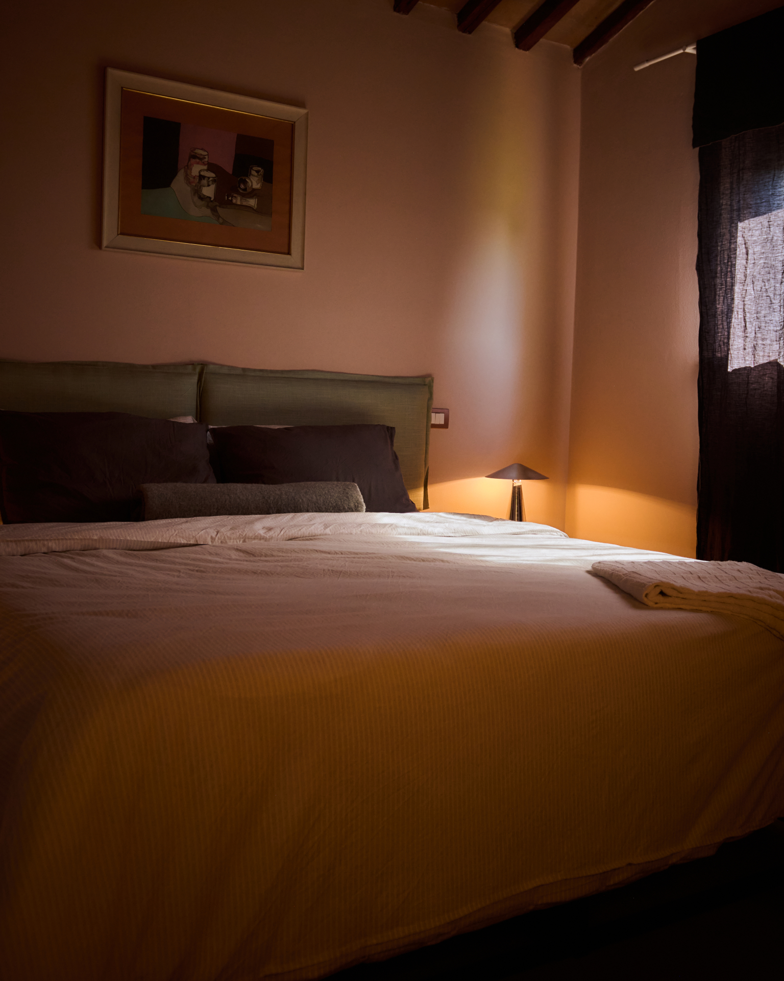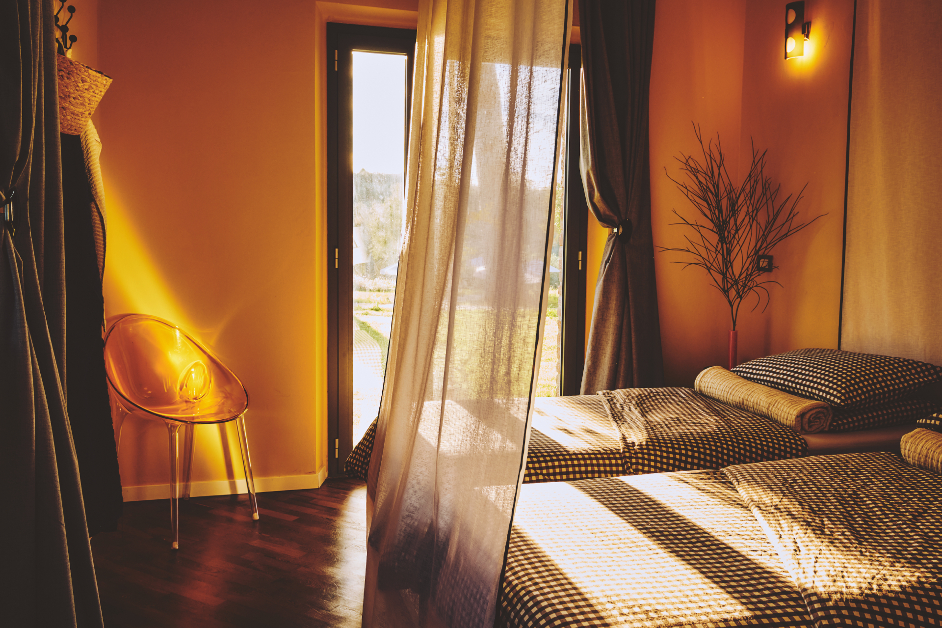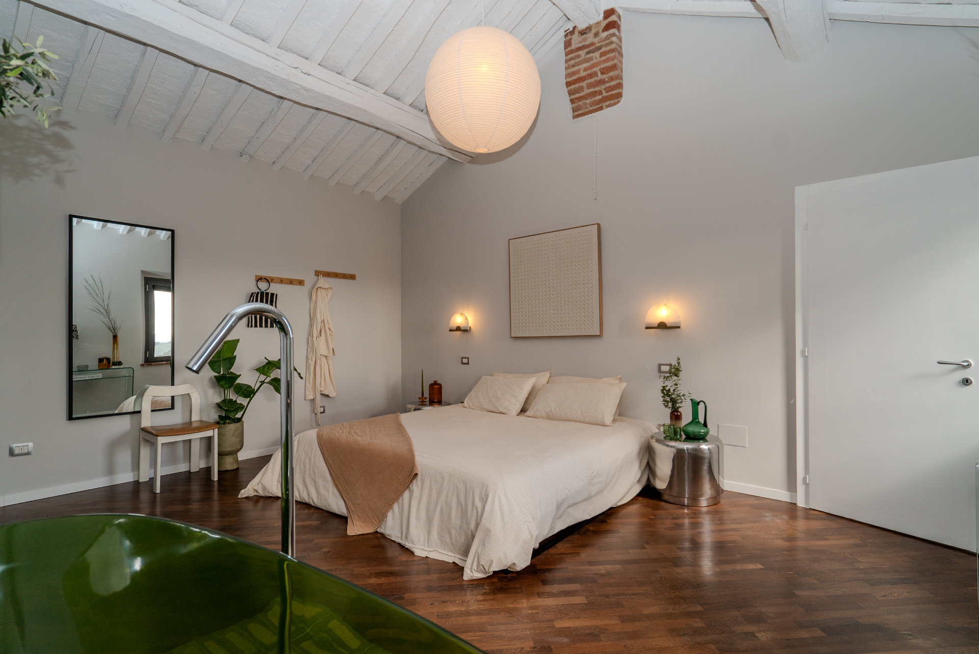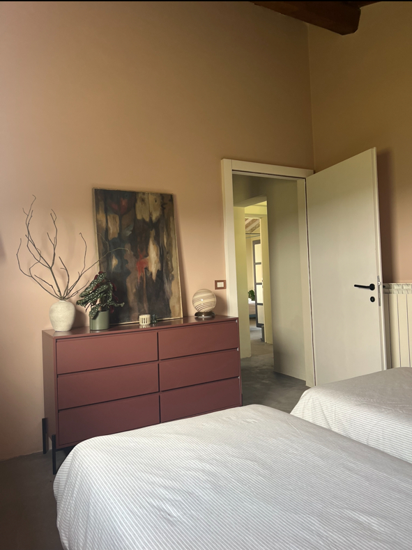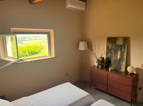Second room off the main hall on the ground floor, 180 x 200cm bed (also customizable to two 90 x 200cm beds), direct door from bedroom to outdoor garden, bathroom next door which is exclusive to this bedroom