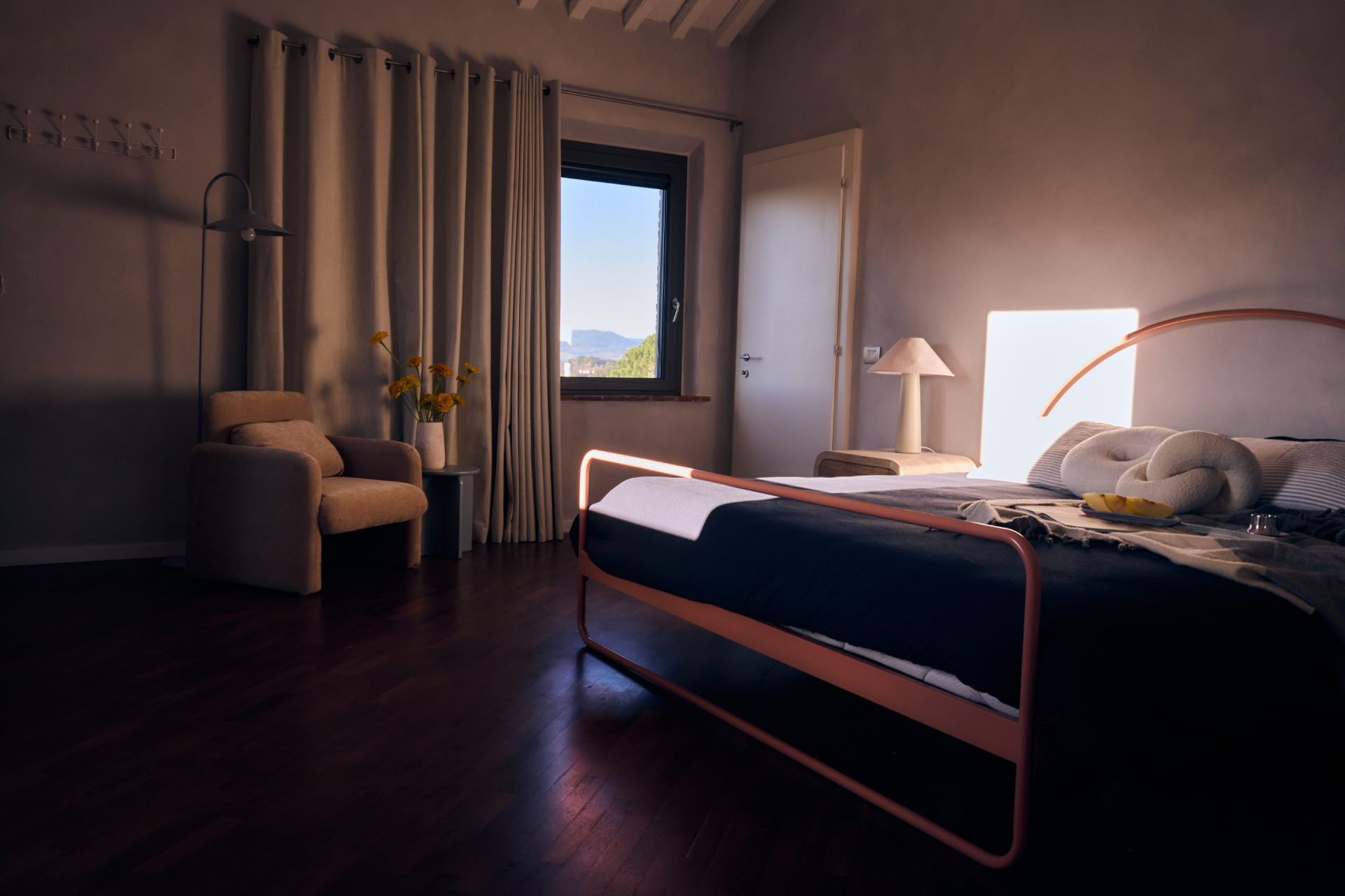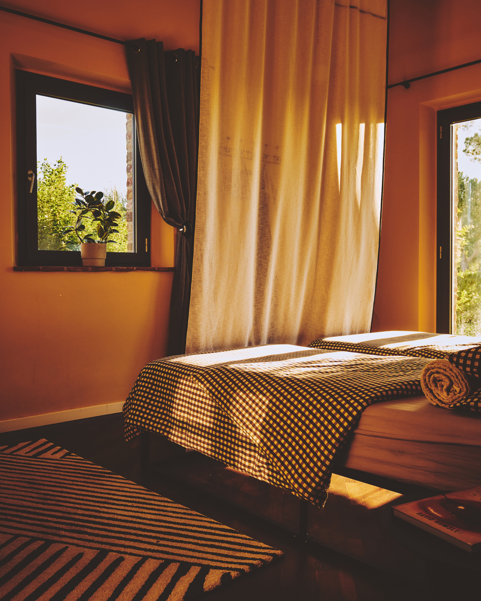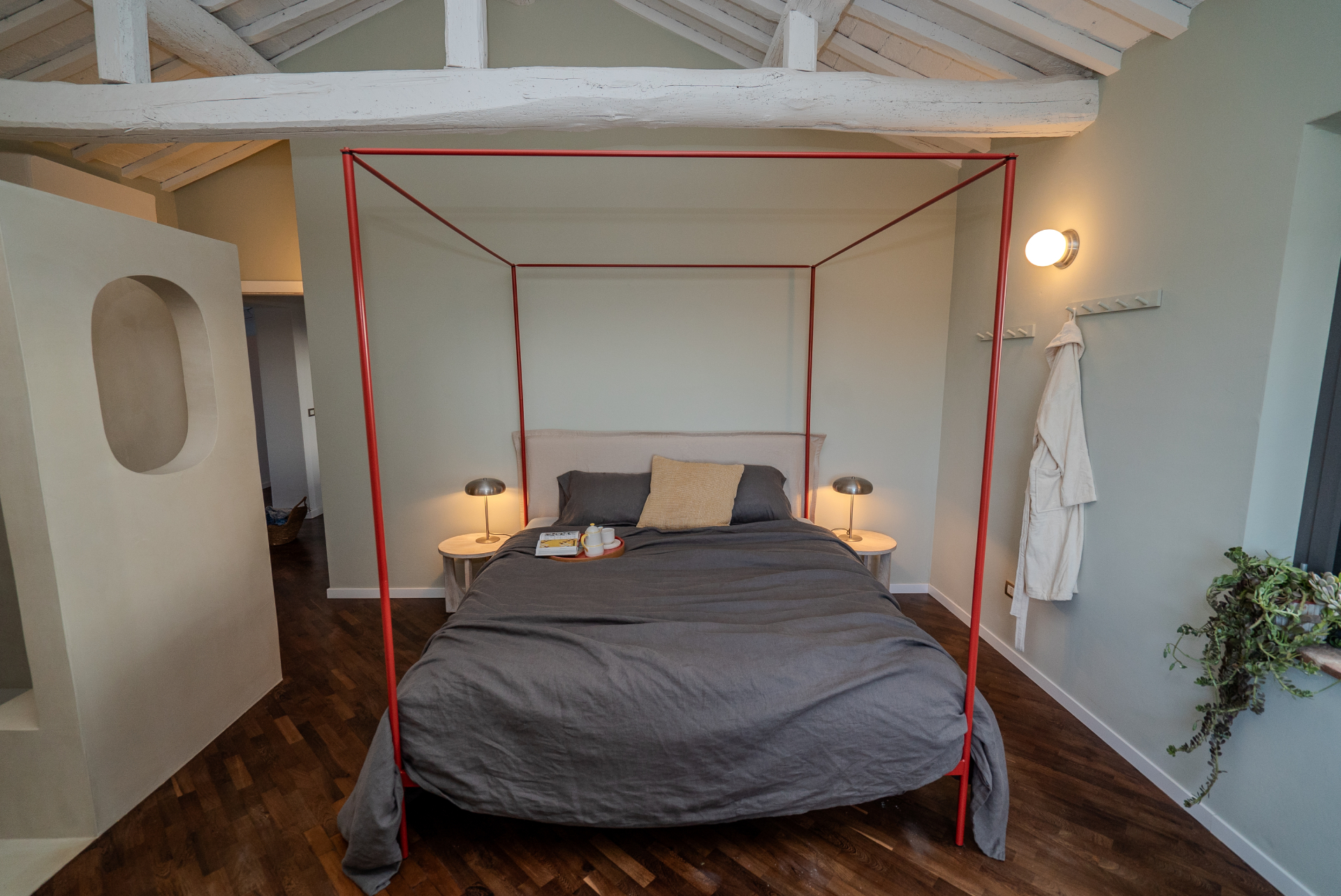 Second room off the main hall on the ground floor, 180 x 200cm bed (also customizable to two 90 x 200cm beds), direct door from bedroom to outdoor garden, bathroom next door which is exclusive to this bedroom