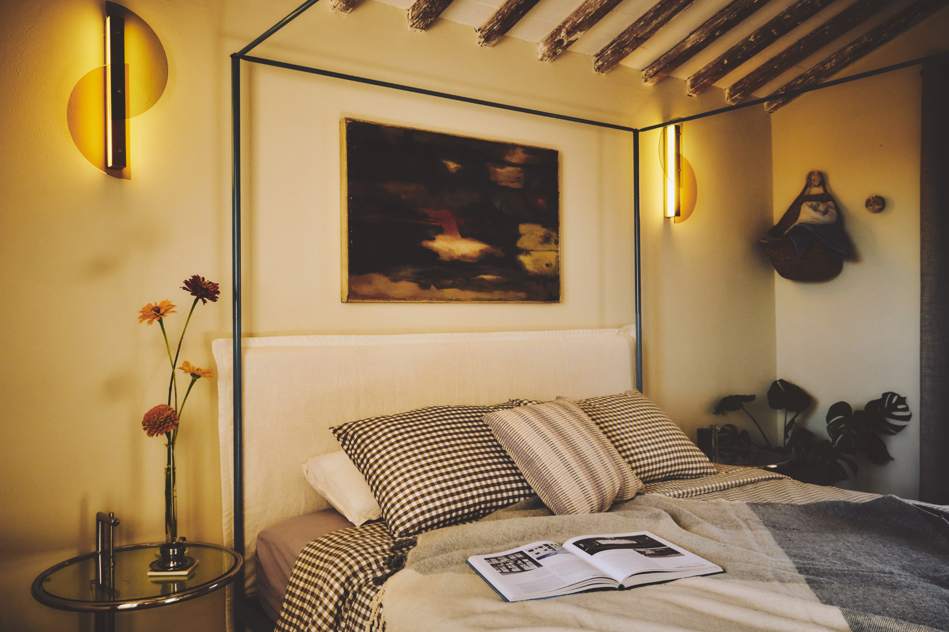 First of two ground-level bedrooms in our poolhouse, 180 x 200cm 4 poster bed, adjoining bathroom, and a large bathroom shared with the following bedroom